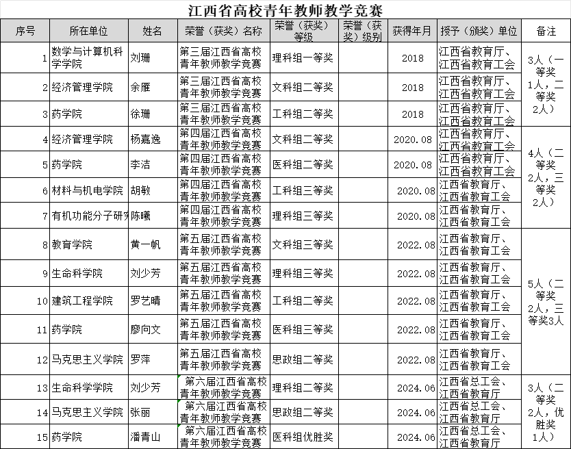 江西科技师范大学历届江西省高校青年教师教学竞赛获奖名单