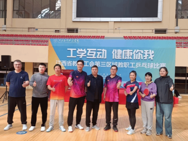 2025年10月25日,江西省第三区域教职工乒乓球比赛在江西应用科技学院举行。我校乒乓球代表队凭借精湛的球技、默契的配合和顽强的球风从众多参赛队伍中脱颖而出,夺得团体第一名的好成绩,实现了历史性突破。为学校赢得了荣誉,也展现了新时代教育工作者的风采。