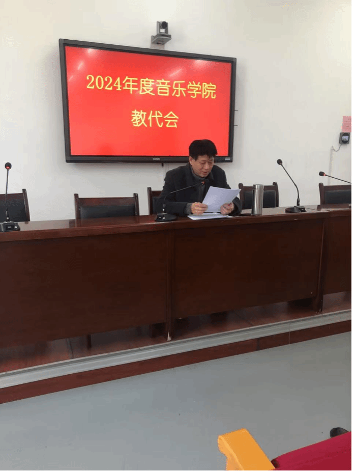 孙振辉同志代表音乐学院领导班子做了《音乐学院2024年度工作报告》,报告回顾总结了2024年的工作情况,对2025年及下一步工作进行了计划与设想。