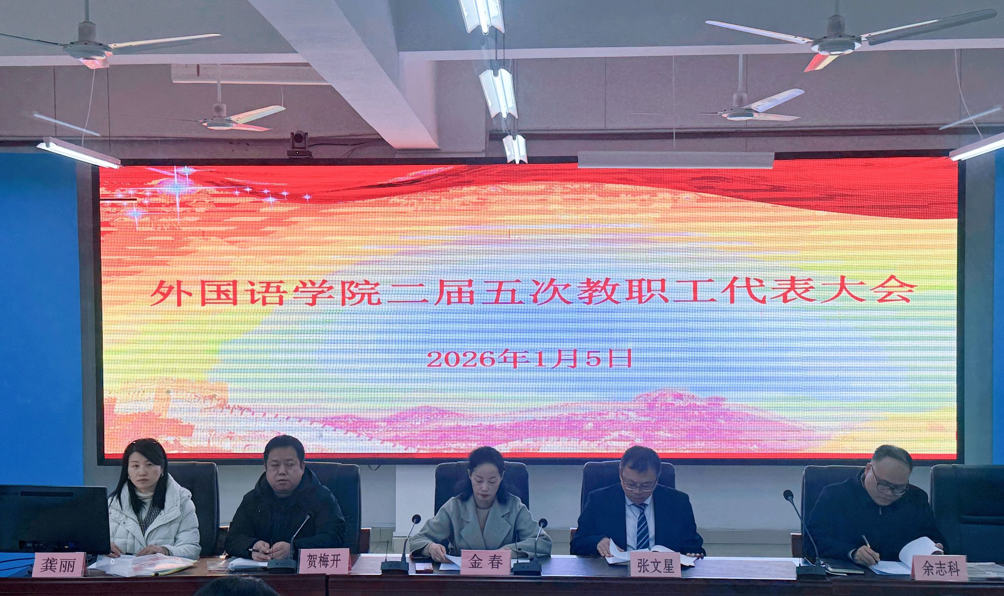 1月5日,外国语学院分会在红角洲校区W3101会议室召开二届五次教职工代表大会。学院党政领导及教职工代表齐聚一堂,积极建言献策,共商学院高质量发展大计。