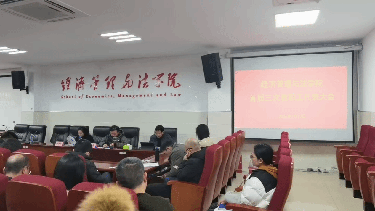 为深入贯彻落实党的二十届四中全会精神,切实保障教职工参与学院管理的民主权利,1月13日上午,经济管理与法学院在逸夫楼419召开首届三次教职工代表大会。会议由学院党委副书记万康主持。
